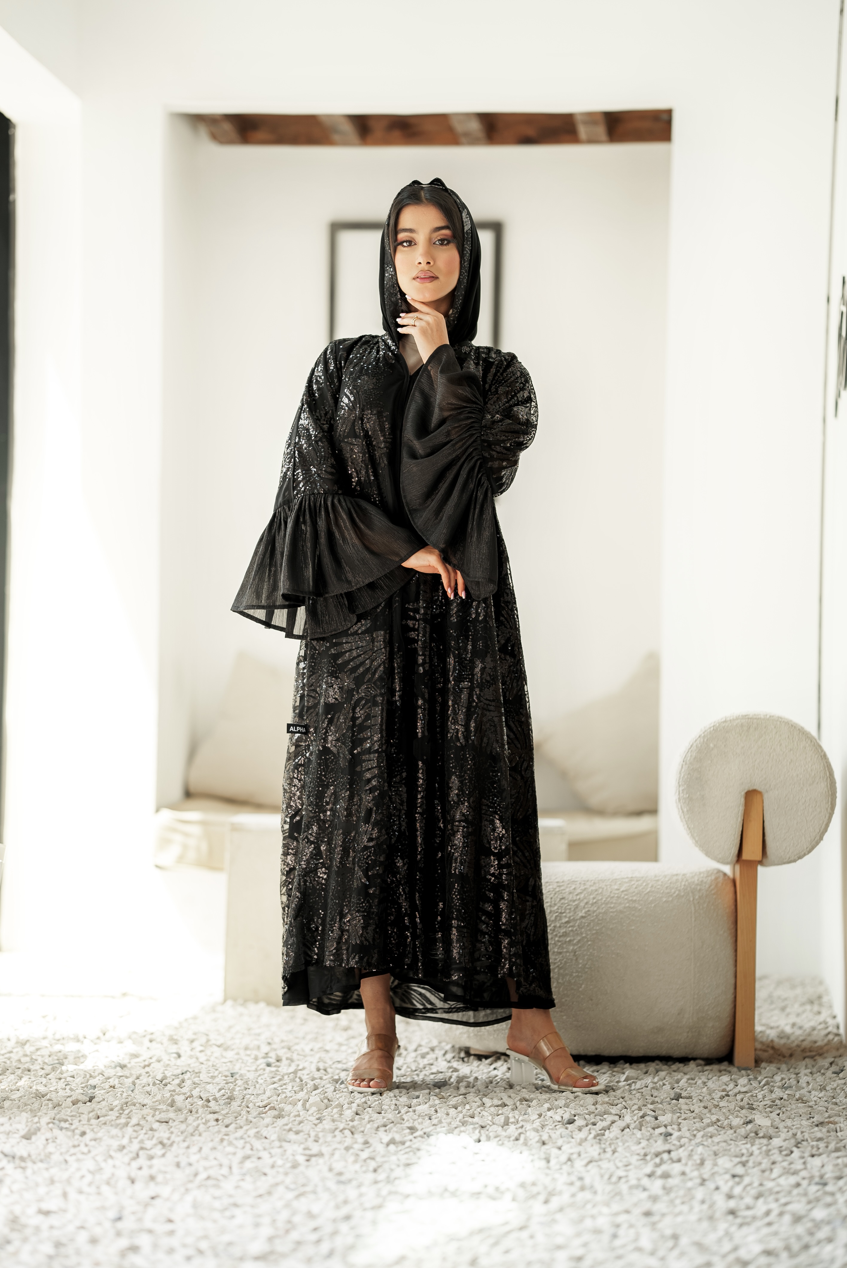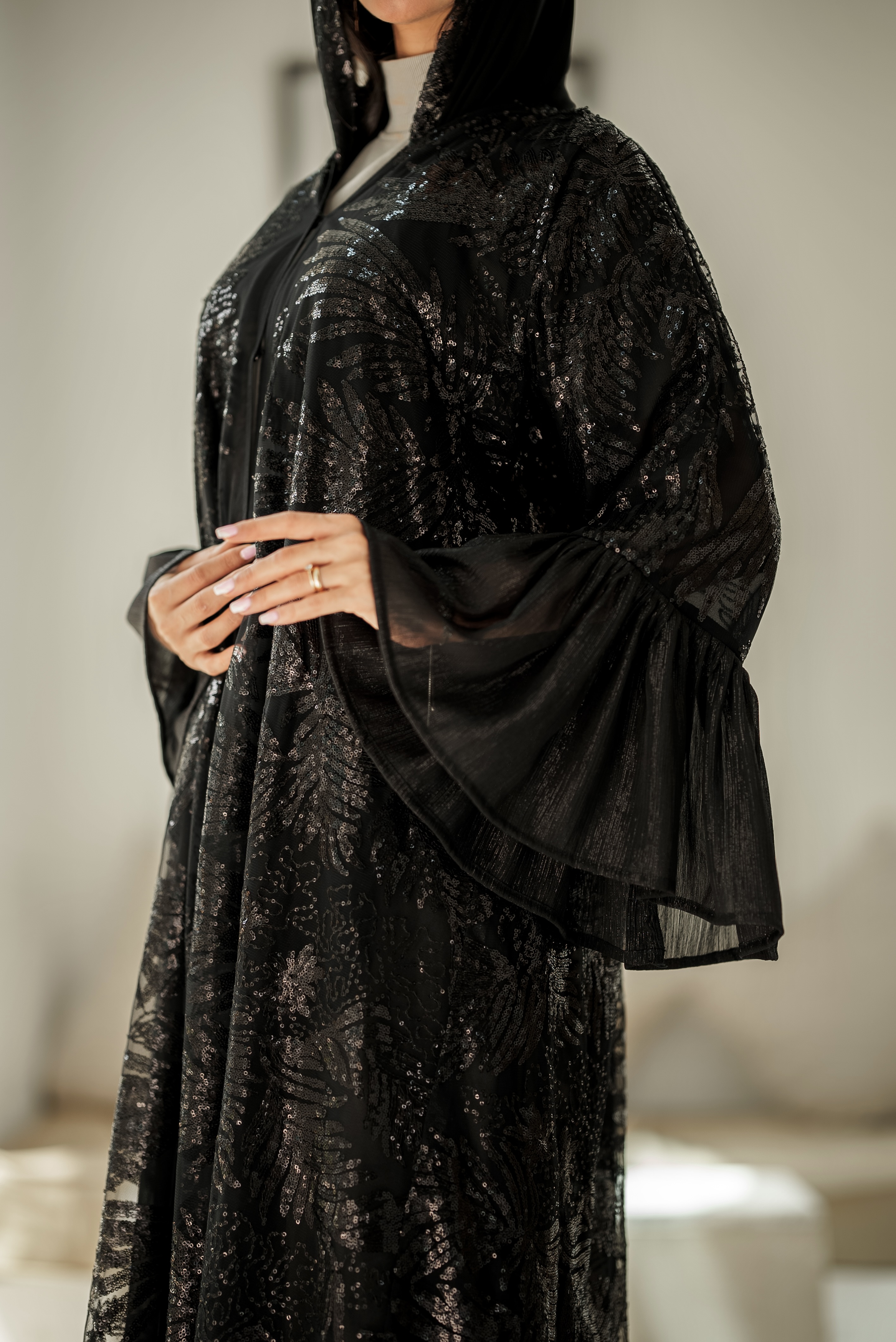 تتميز العبايا بقماش دبل شيفون نقشه قصه عادية كلوش