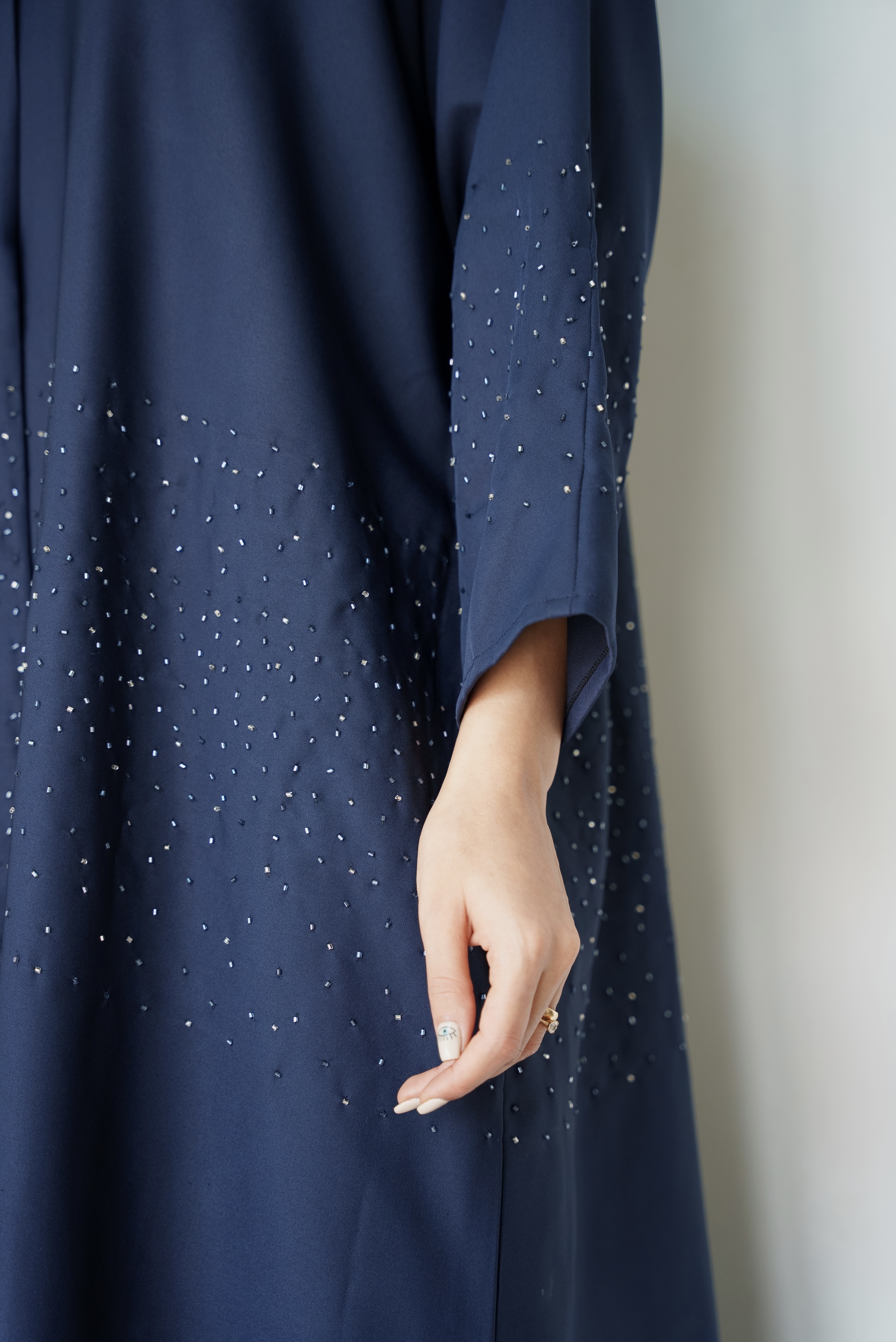 تتميز العبايا بقماش ناعم وذات قصة عاديه بشغل شك