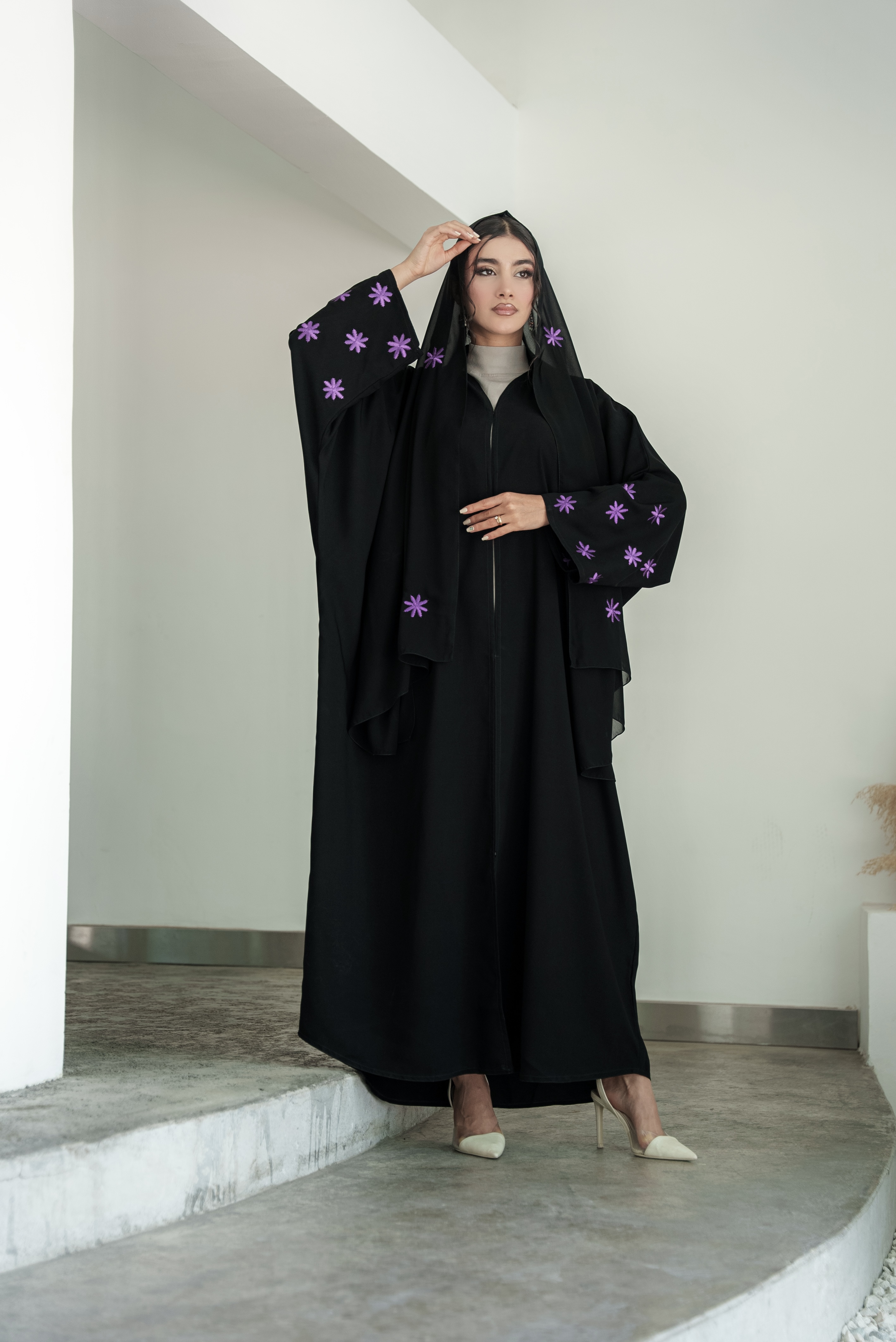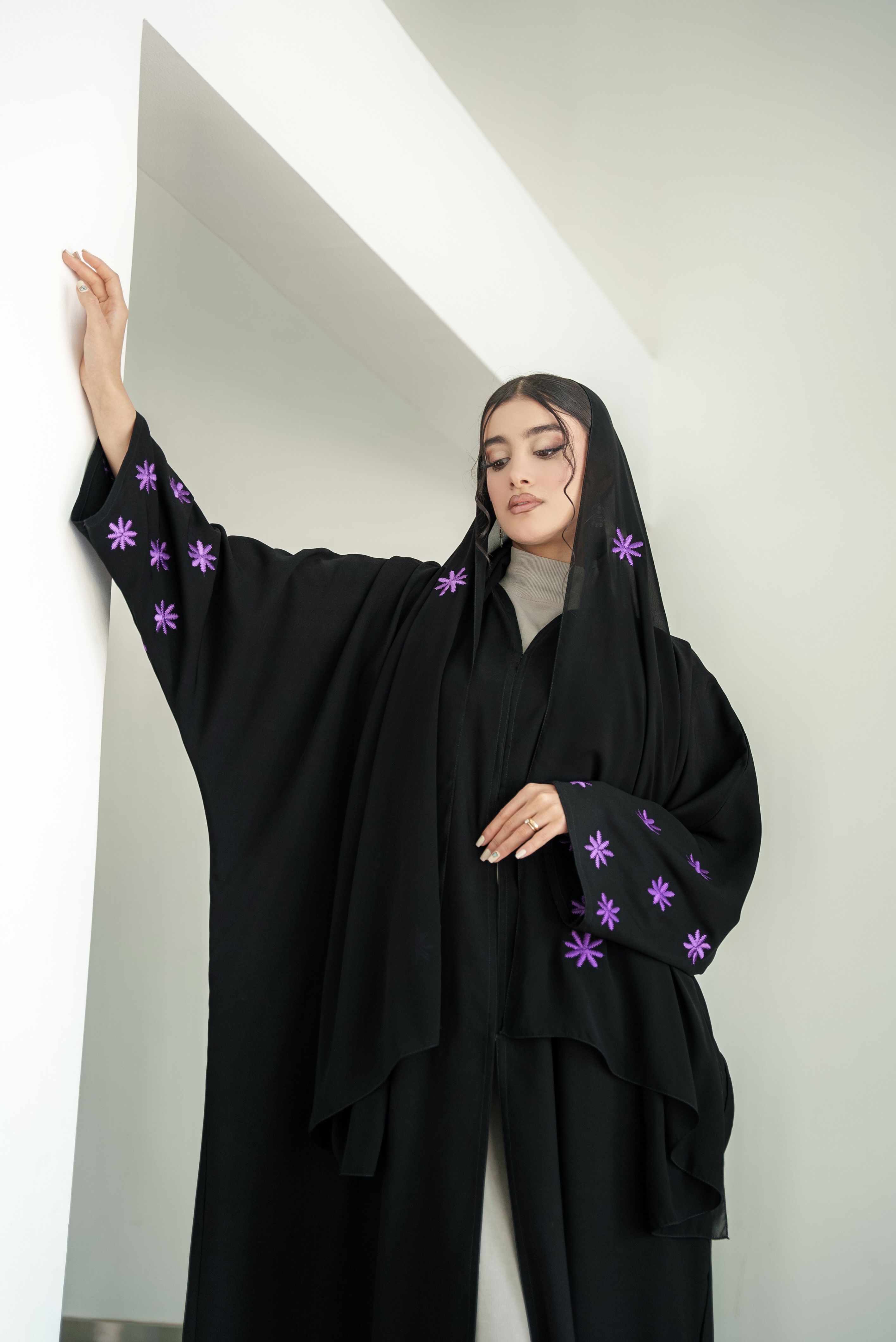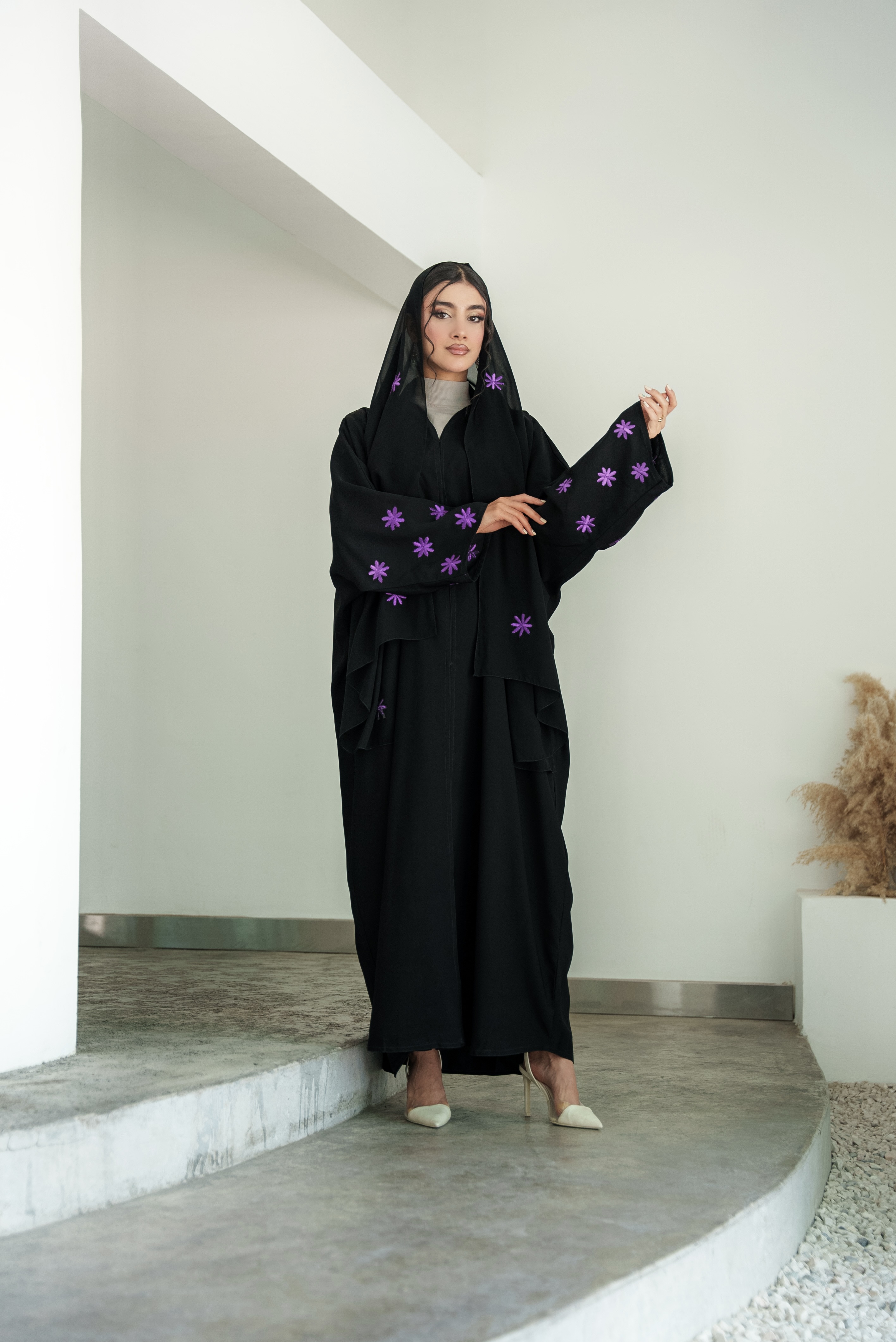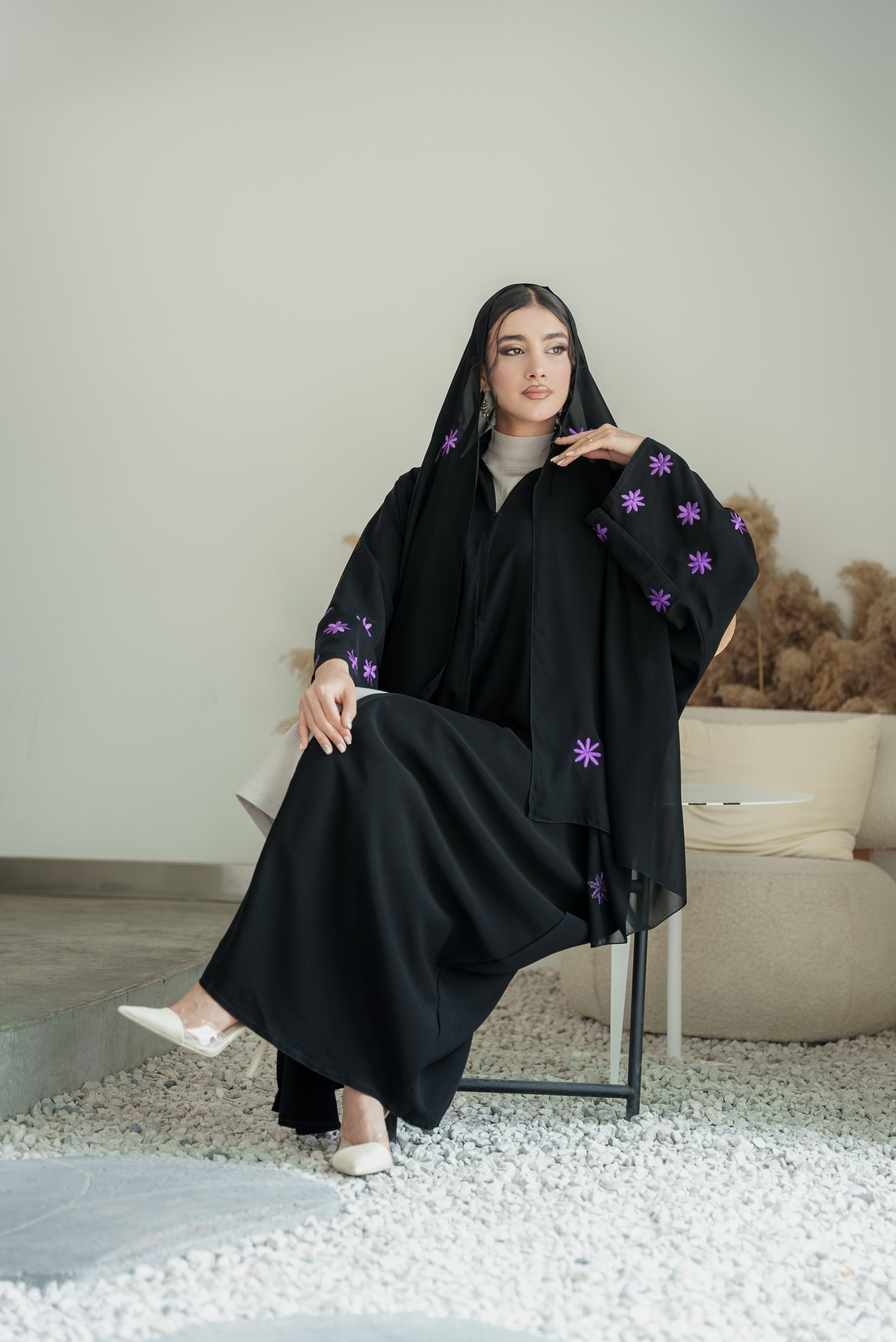 تتميز العباية بقصة بحرينيه ذات شغل تطريز