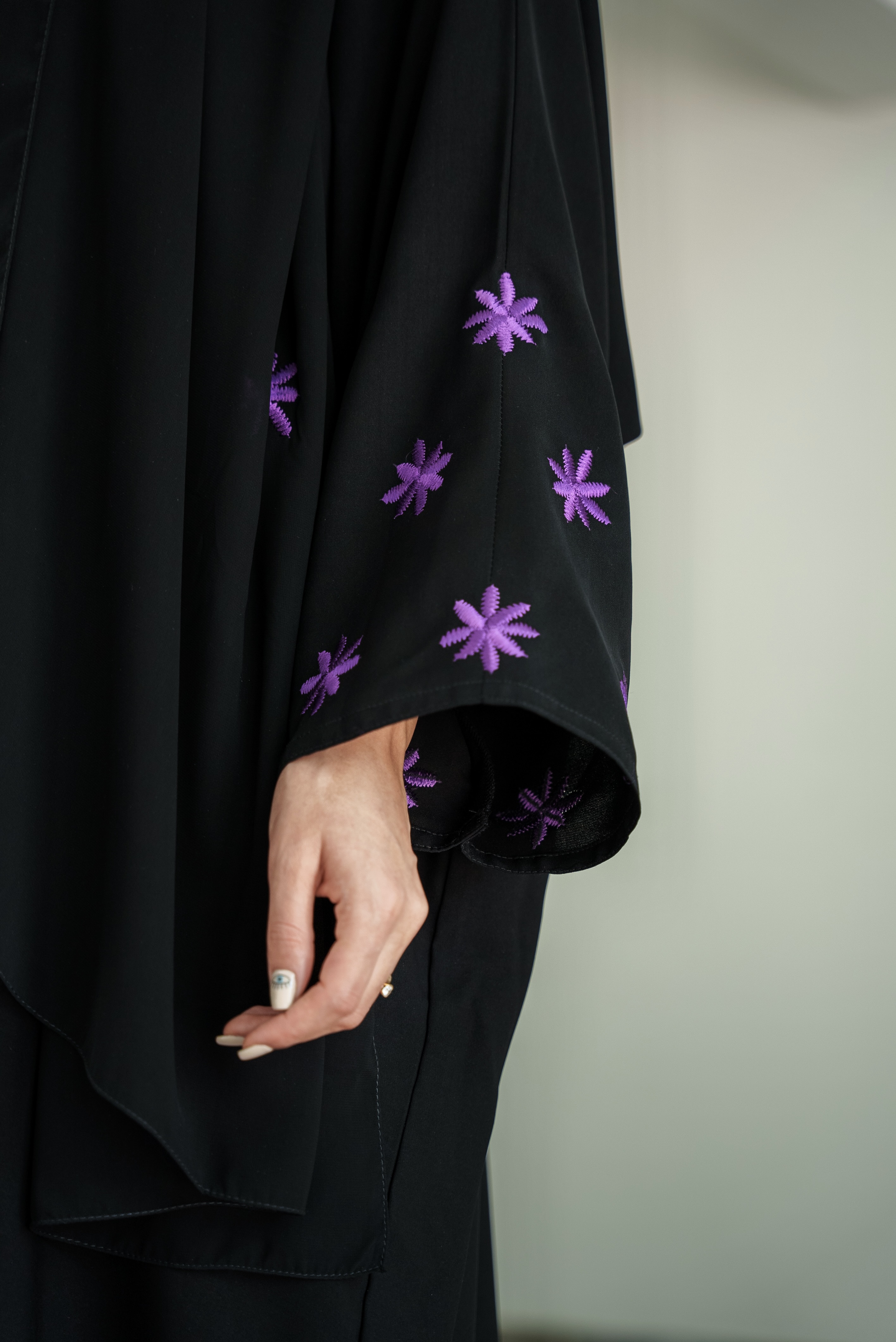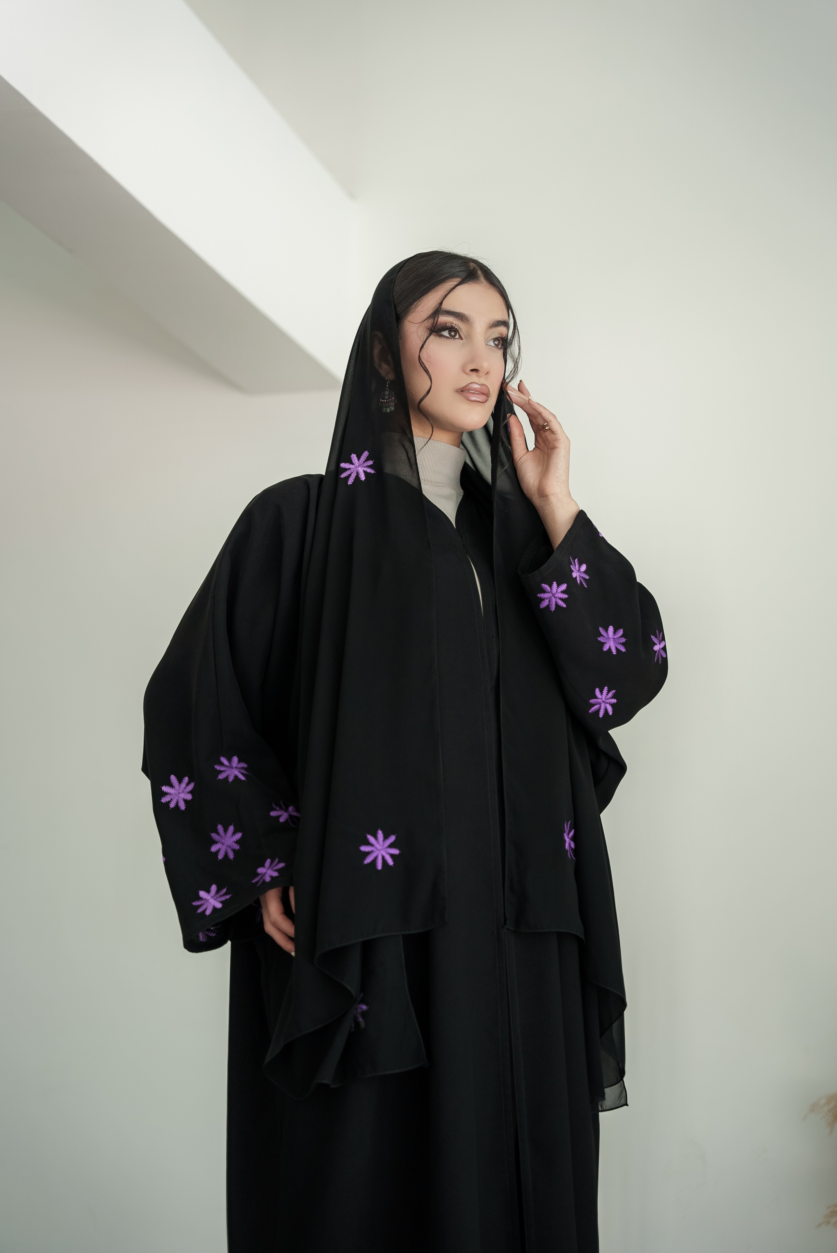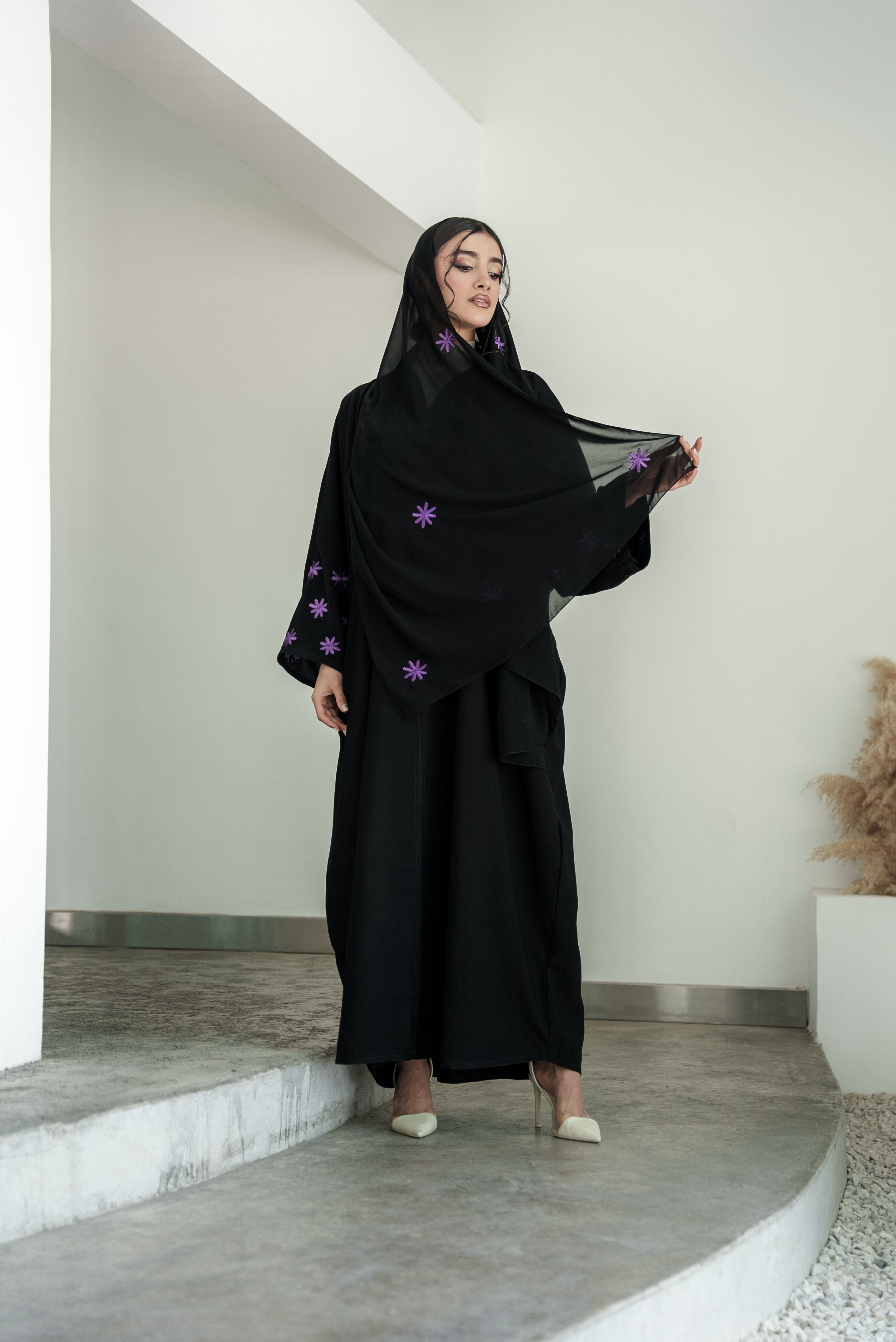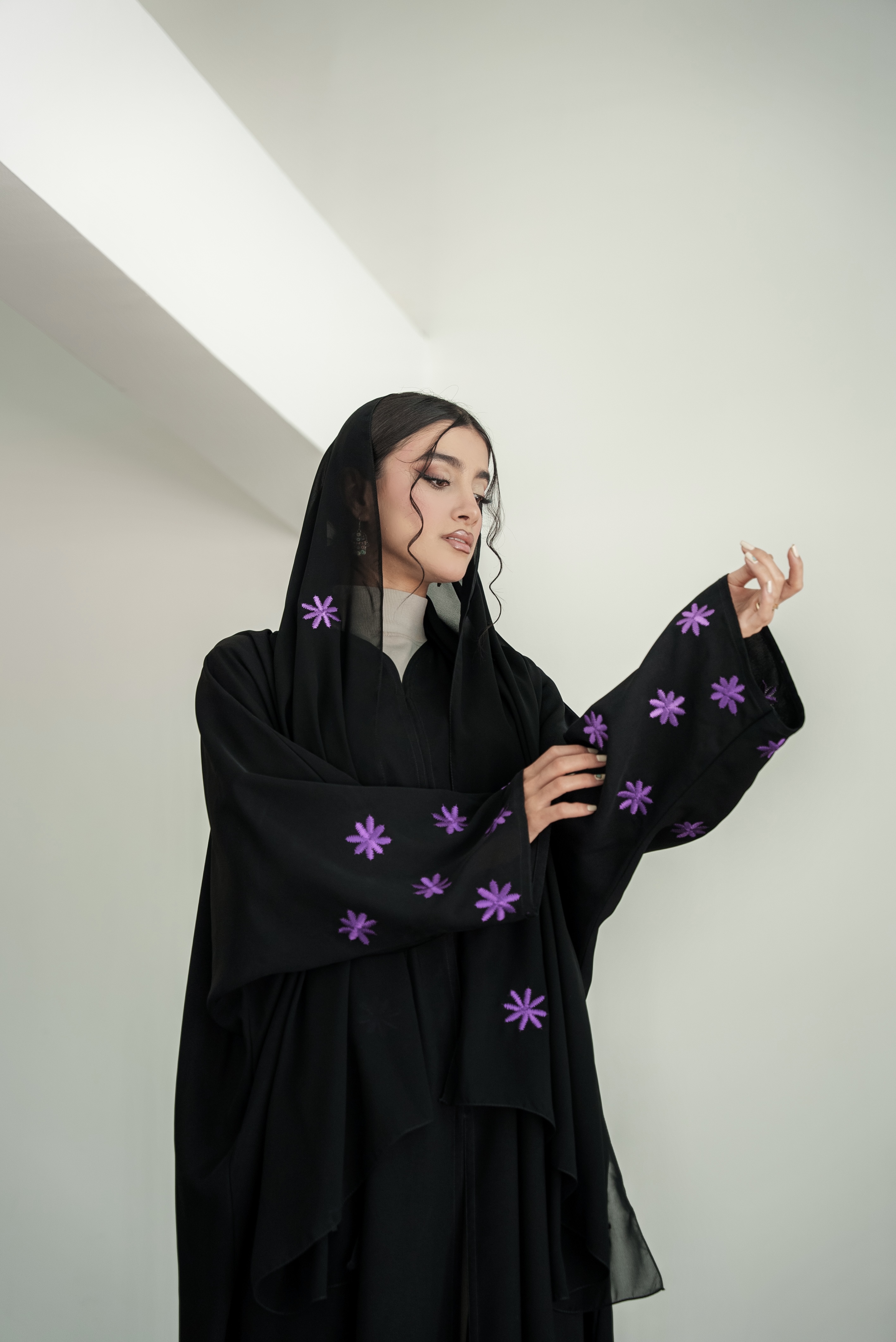 تتميز العباية بقصة بحرينيه ذات شغل تطريز