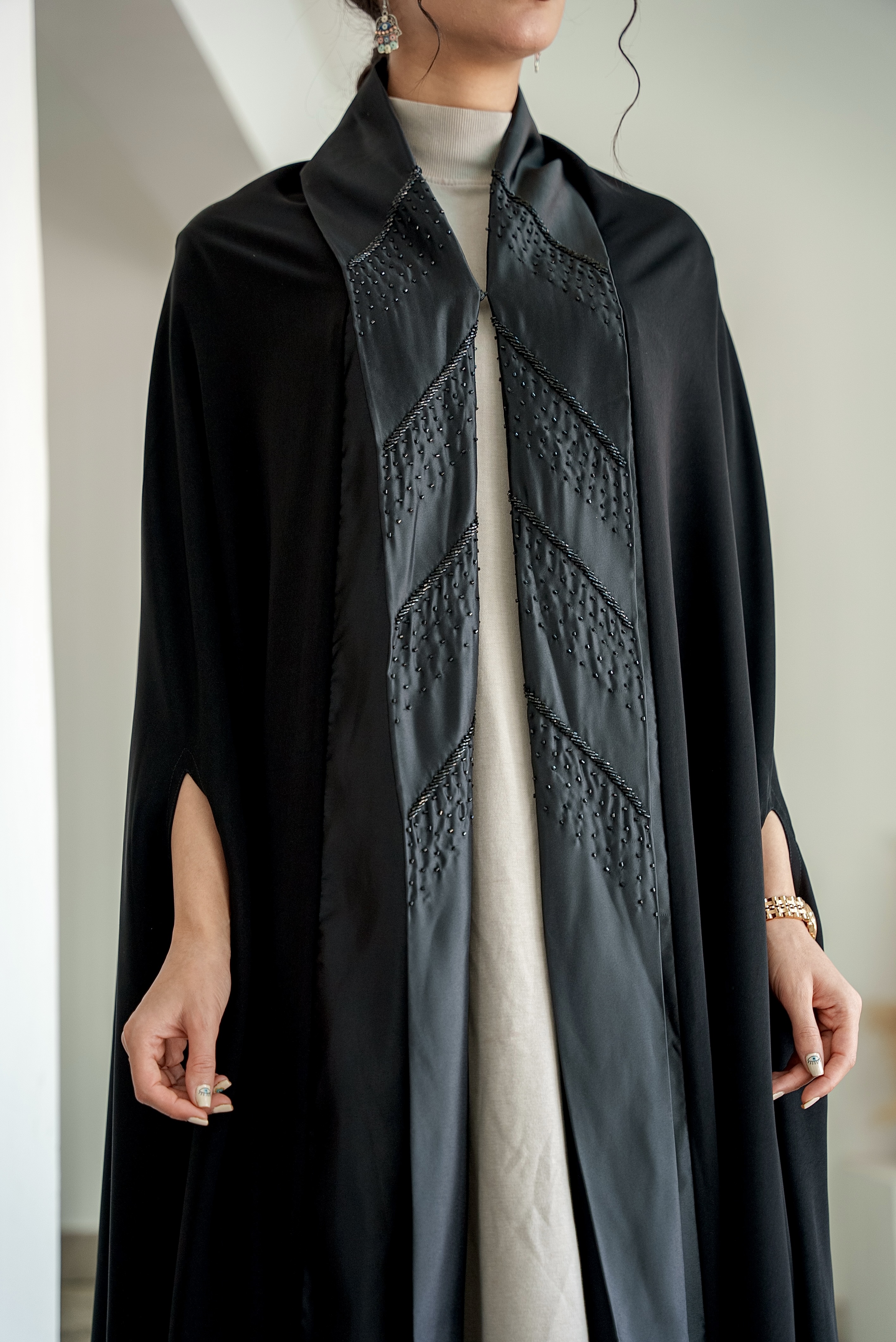 تتميز العباية ذات الشك بقصة فراشه بحرينيه